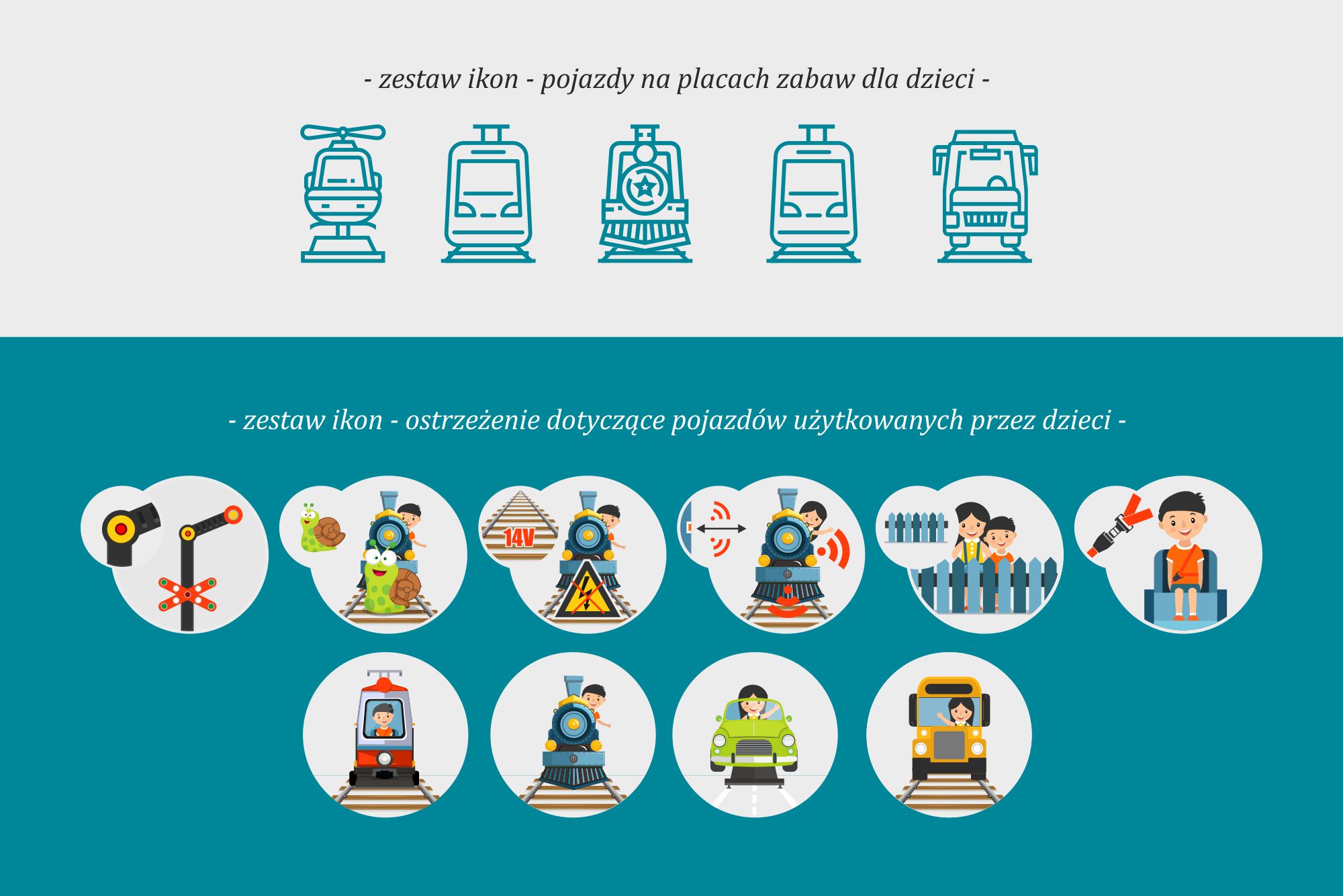 Zestaw ikon wektorowych - pojazdy dla dzieci